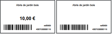 - d'agrandir ou de réduire la taille du code-barres sur l'étiquette - d'imprimer avec ou sans le prix du produit