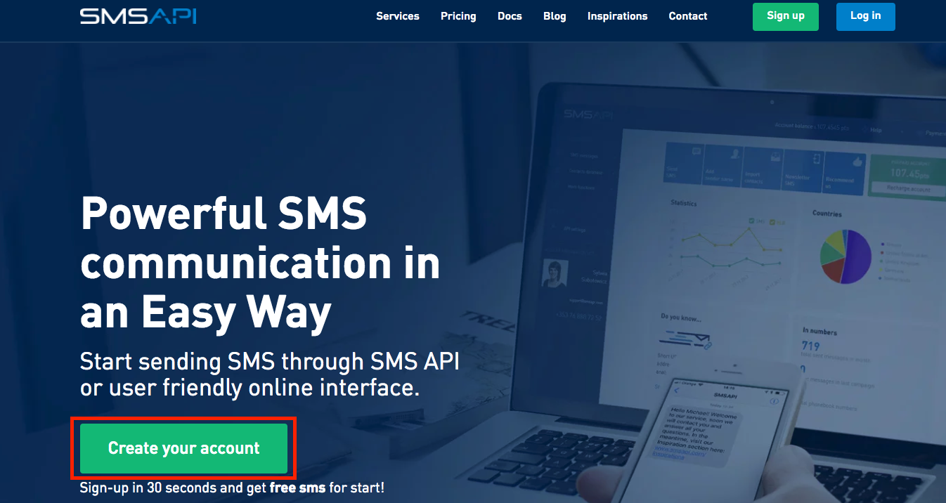 1) Depuis smsapi.com, cliquez sur "Create your account".