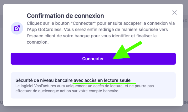 afin de confirmer la connexion bancaire avec un accès en lecture seule -