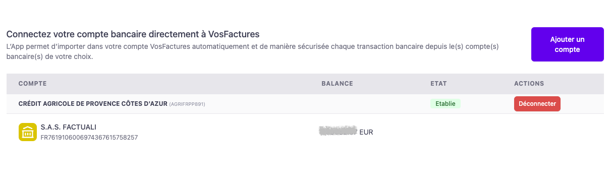 Gain de temps assuré :✓ Import bancaire automatique ✓ Rapprochement instantané & automatisé avec les factures payées ✓ Visibilité centralisée de vos mouvements bancaires